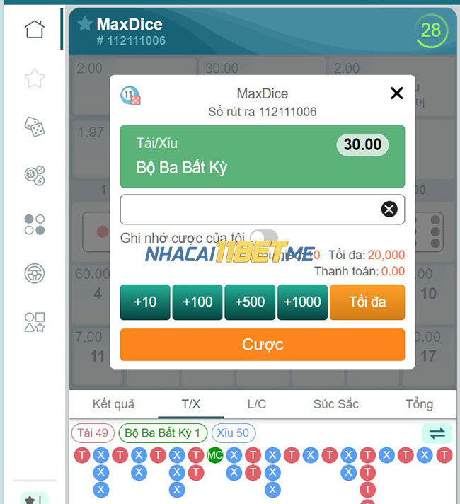 Sau khi đã chọn xong các con số, bạn cần xác nhận số tiền cược cho mỗi bộ số. 11Bet quy định mức cược tối thiểu và tối đa cho mỗi loại hình xổ số. Kiểm tra kỹ thông tin trước khi xác nhận đặt cược.