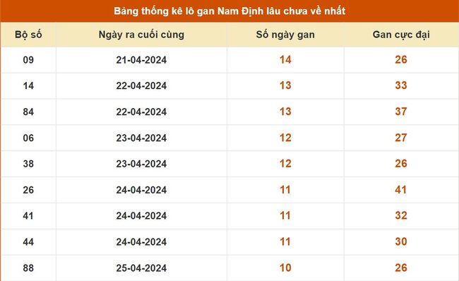 Thống kê lô gan miền Bắc tính tới 11/5/2024
