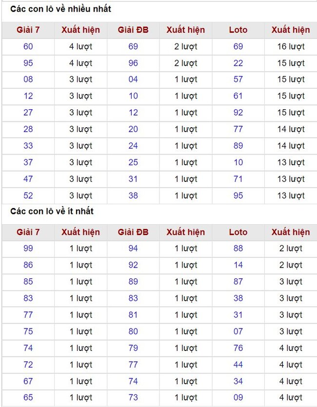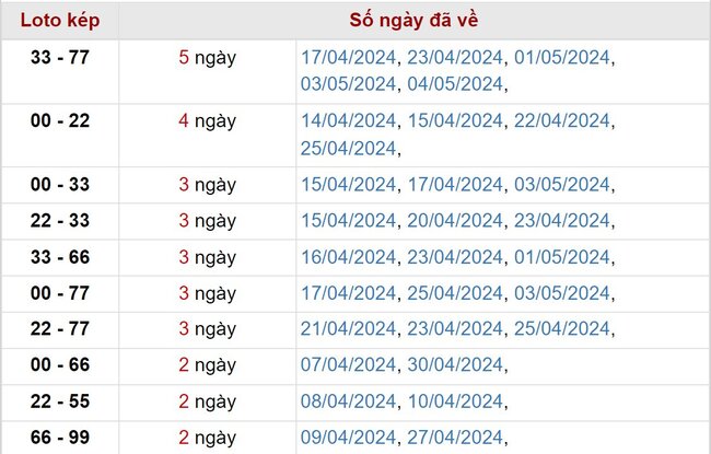 Thống kê lô tô kép miền Bắc tính tới 11/5/2024