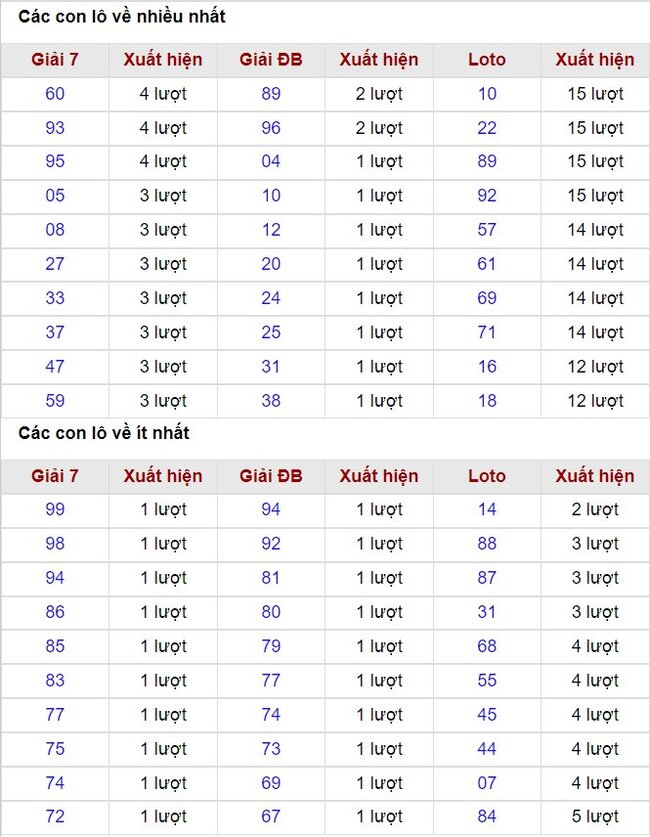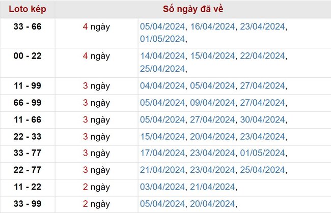 Thống kê lô tô kép miền Bắc tính tới 9/5/2024