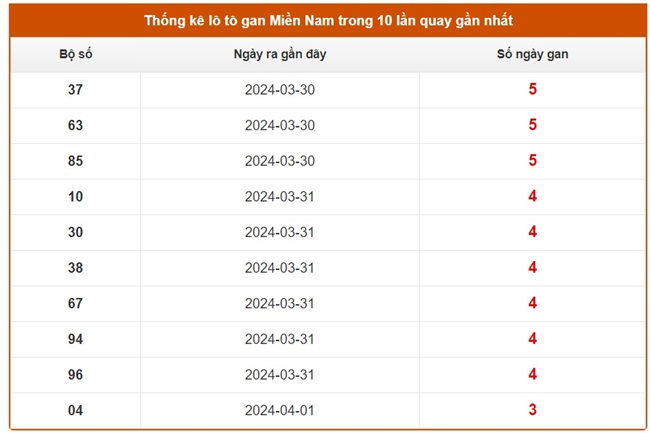 Thống kê lô gan miền Nam tính tới 7/4/2024
