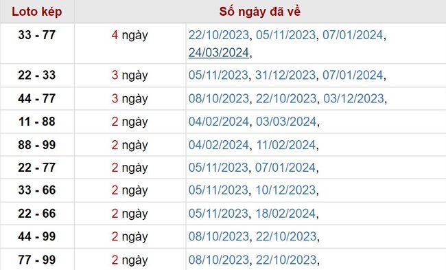Thống kê lô tô kép Đà Lạt tính tới 7/4/2024