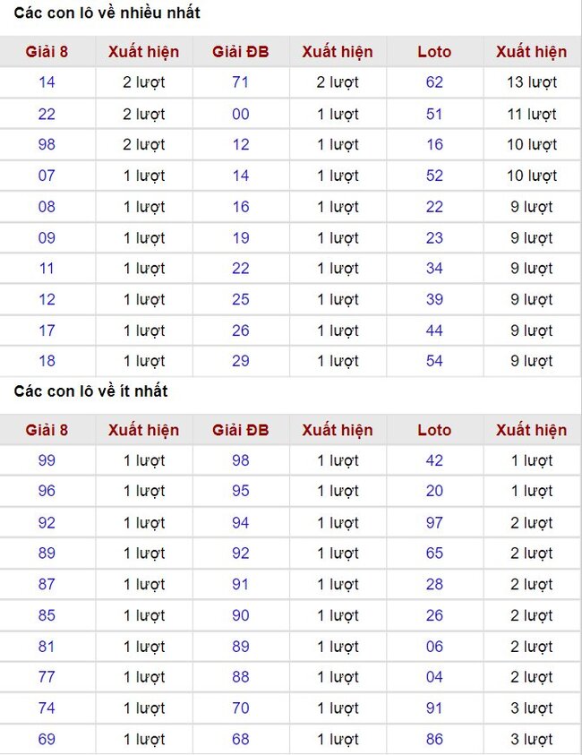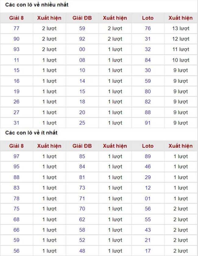 Thống kê lô tô kép Tiền Giang tính tới 7/4/2024