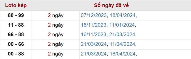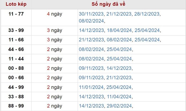 Thống kê lô tô kép miền Nam tính tới 9/5/2024