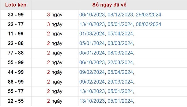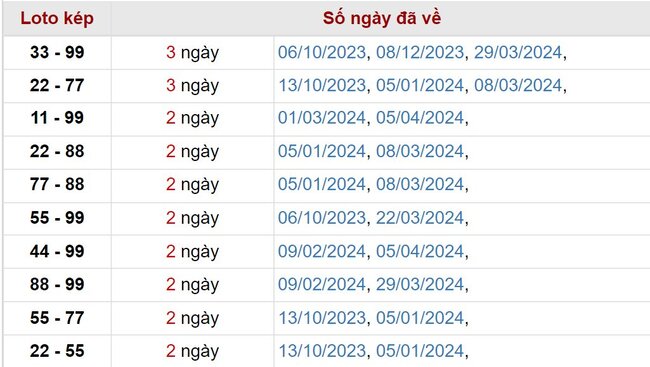 Thống kê lô tô kép Gia Lai ngày 10/5/2024