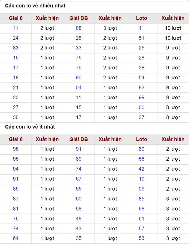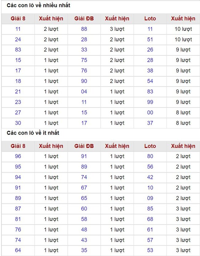 Thống kê lô tô kép miền Trung tính tới 10/5/2024