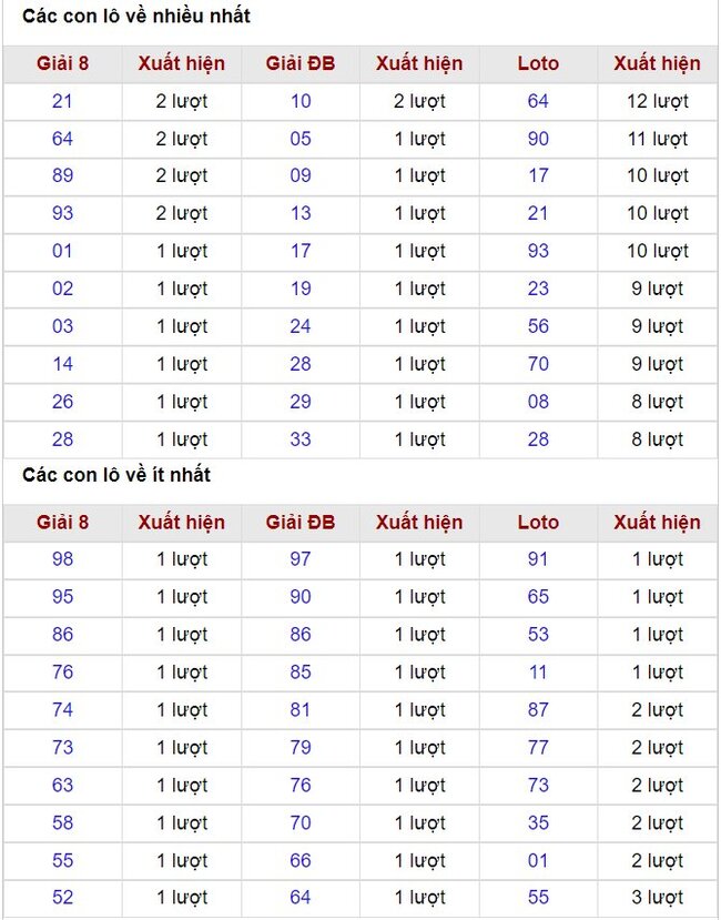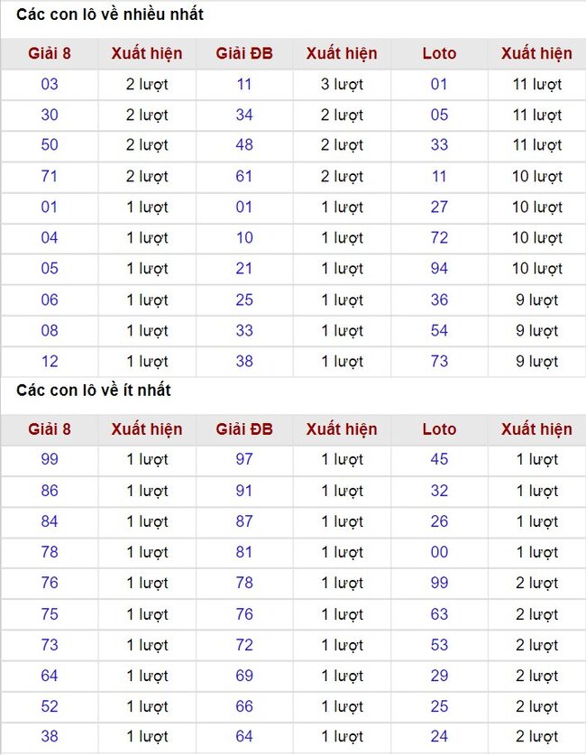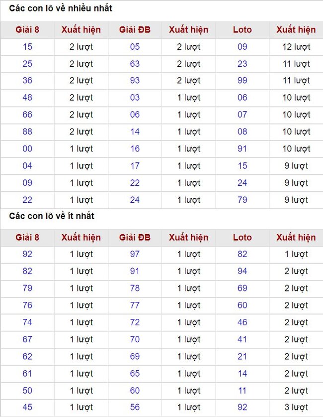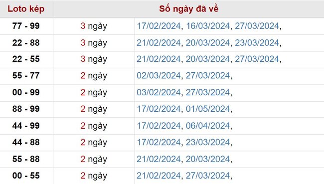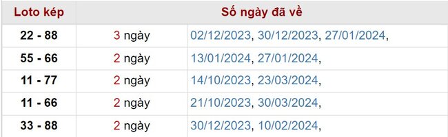 Thống kê lô tô kép miền Trung tính tới 11/5/2024