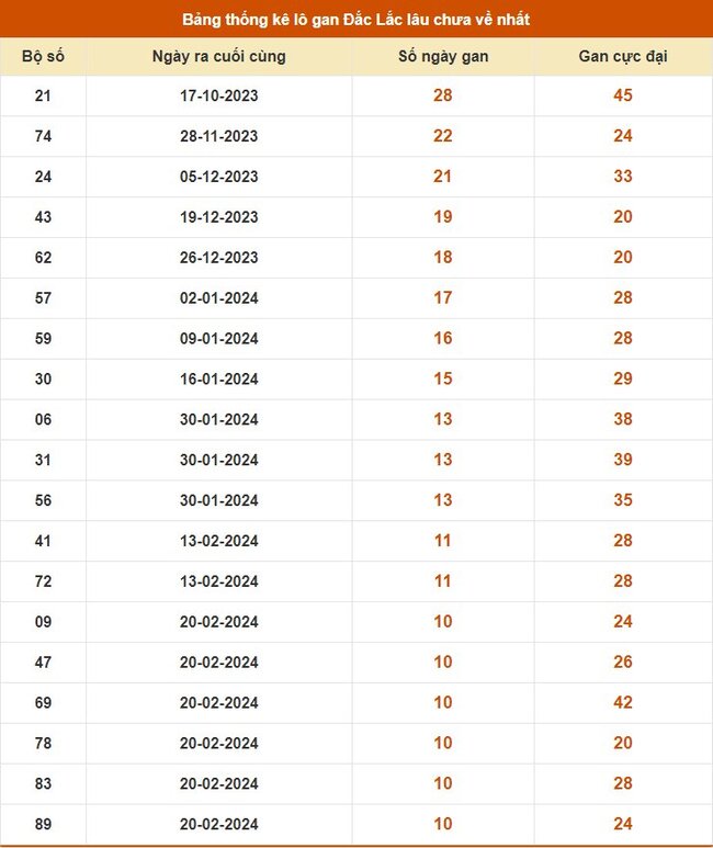 Thống kê lô gan Đắk Lắk ngày 7/5/2024