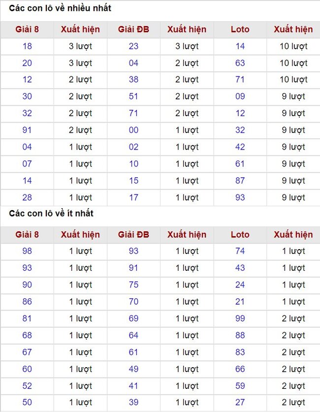 Thống kê số lần xuất hiện miền Trung tính tới 7/5/2024