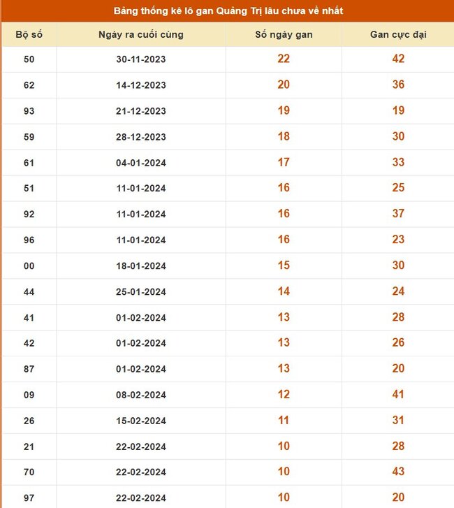 Thống kê lô gan Quảng Trị ngày 9/5/2024