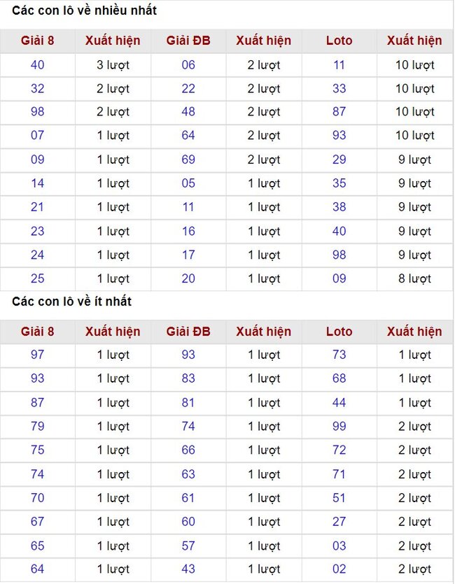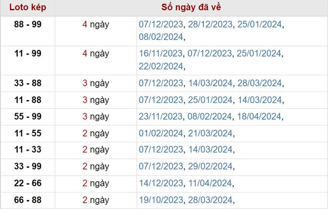 Thống kê lô tô kép Quảng Bình ngày 9/5/2024